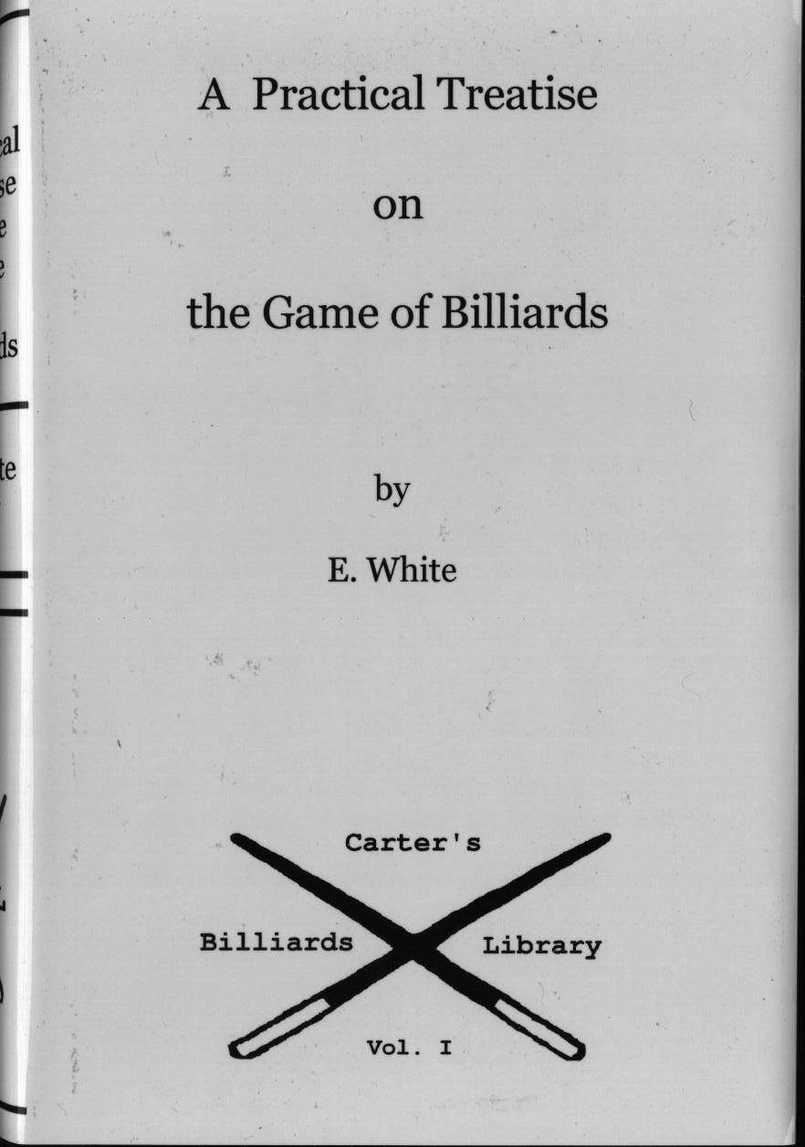 - Reprint of "A Practical Treatise on the Game of Billiards" by E. White - 1st edition, 1807